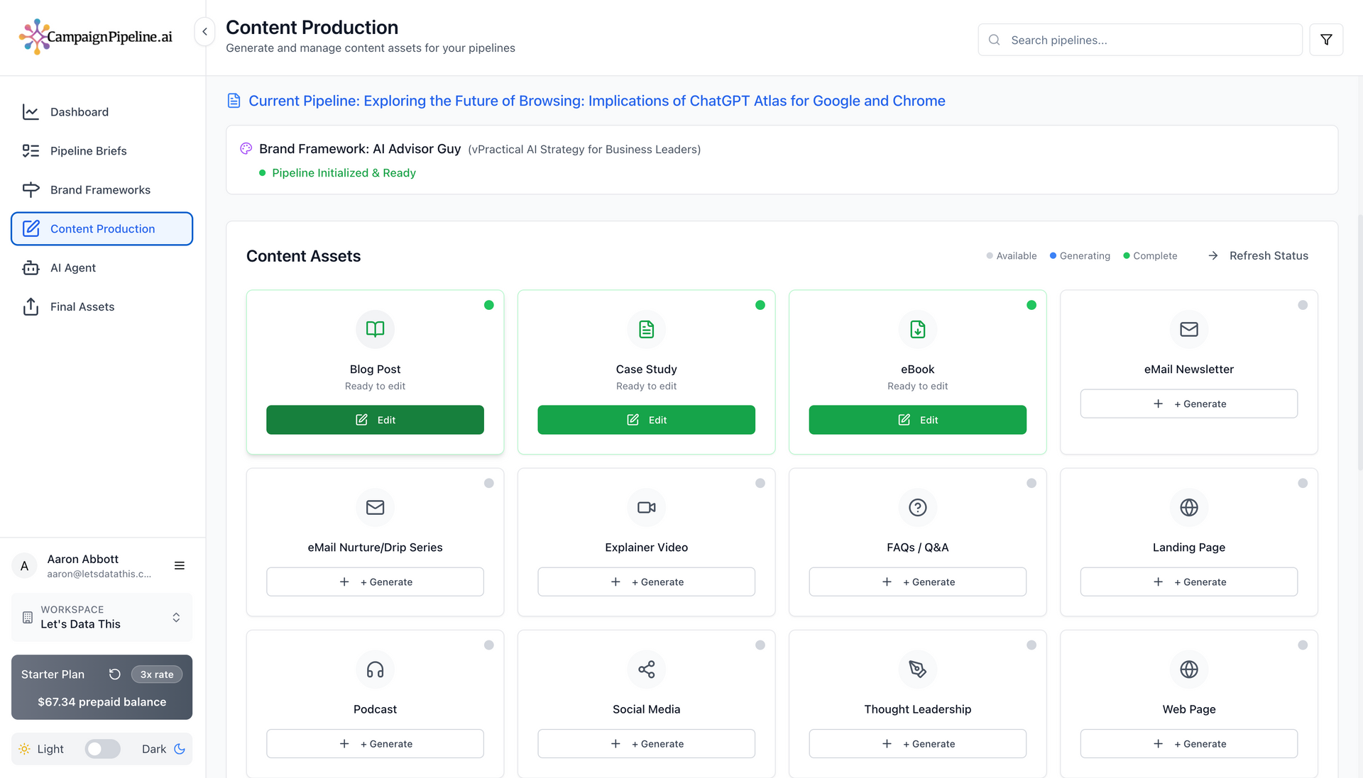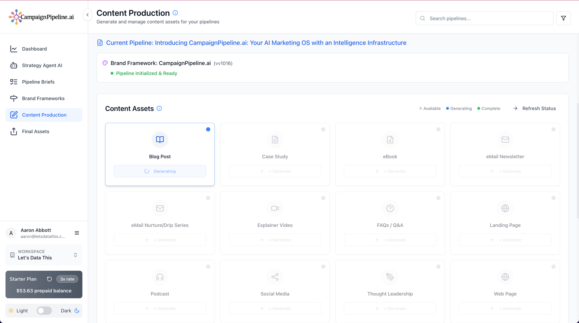 Content AI Agent brings your campaigns to life by strategically building up to 14 interconnected assets from your Pipeline Brief and Brand Framework. It functions as your creative team—strategy, copy, and consistency—all working seamlessly together. Fast, unified, and scalable.
