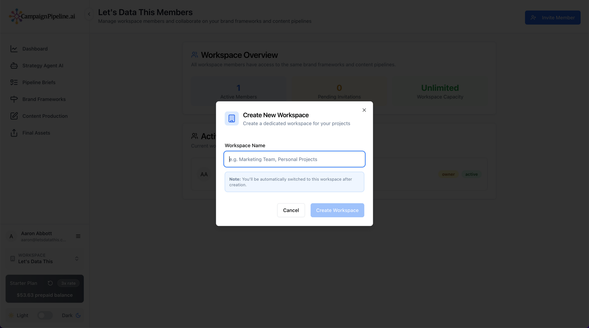 Manage multiple brands or divisions without switching accounts. Each workspace has its own frameworks, tone, and goals — color-coded and clearly separated — giving you total control while keeping everything unified under one roof.